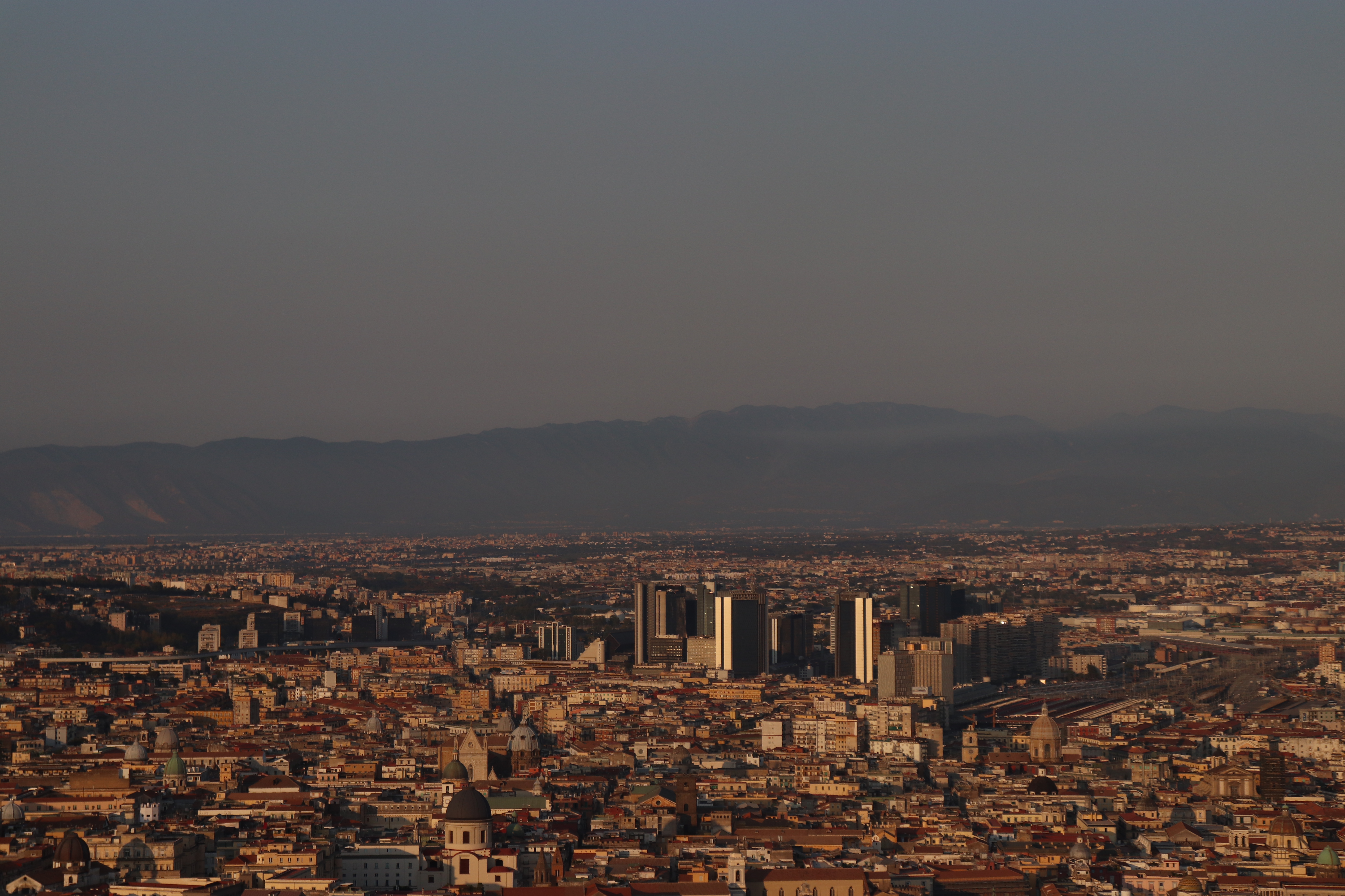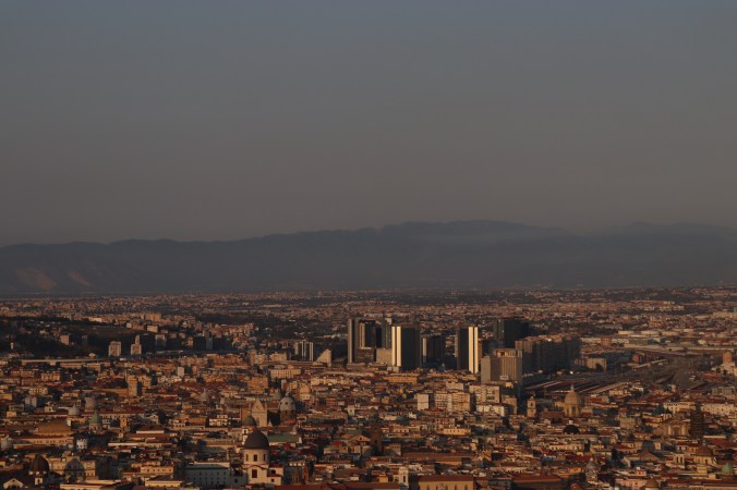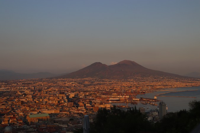 Una sera io e Francesco siamo andati a Castel Sant’Elmo a vedere il tramonto; il porto. Il Vesuvio. La luce rosa.