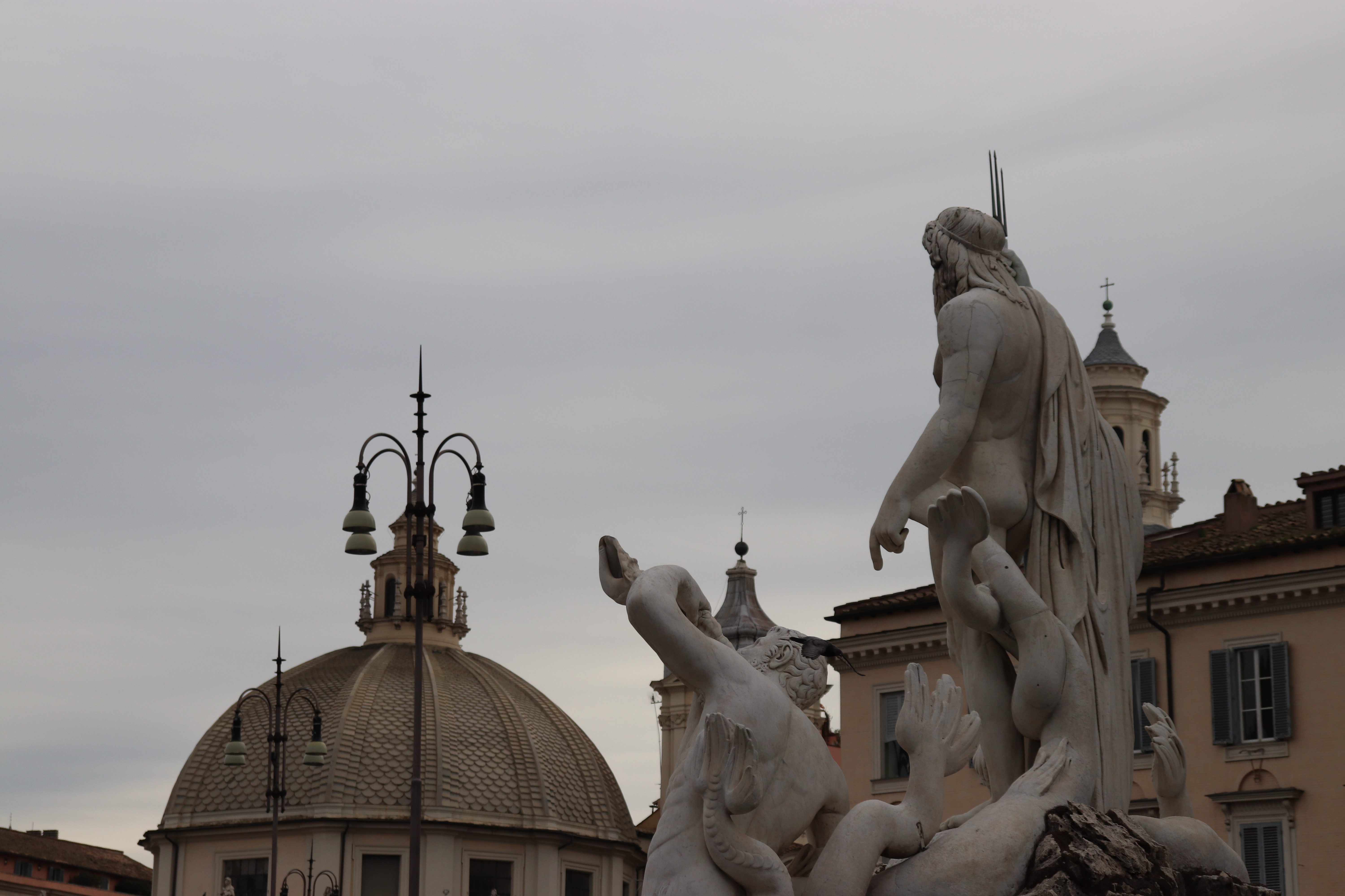 Questa mattina mi sono svegliata abbastanza presto, non c’era traffico, la metro era deserta. Sono andata fino a Ottaviano, ho girato per negozi, ho comprato del caffè profumatissimo. Ho camminato, a lungo, mi sono fermata a scattare delle foto a Piazza del Popolo. Avrei voluto catturare alcune immagini, ma erano tanto belle che non me la sono sentita; non riuscivo a cristallizzare, in un momento, i due ragazzi seduti per terra che disegnavano – alla perfezione – l’obelisco. Non riuscivo a fermare, in uno scatto, il venditore di rose chino alla fontana, che bagnava ogni fiore, uno a uno, come stesse facendo il bagnetto a un bambino. Una coppietta di ultrasettantenni leggeva il giornale su una panchina, in mezzo al nulla (la Repubblica lei, il Corriere dello Sport lui). Due fratellini, di cinque/sei anni, correvano tra i turisti, sulle terrazze del Pincio; ho passeggiato – fermandomi spesso – per Villa Borghese. Sono andata a visitare la galleria di Arte Moderna e Contemporanea. C’erano un sacco di vecchietti che si fermavano davanti ai quadri un po’ perplessi, tra un “cosa vuol dire?” e un “almeno questo si è impegnato”.