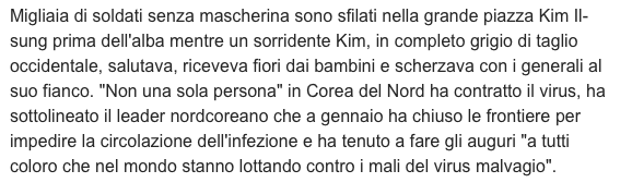 Fortuna che esistono luoghi in cui di coviddi non ce ne è per davvero: per far rosicare l’Occidente, Kim Jong un organizza una parata in pieno stile pre-pandemico.