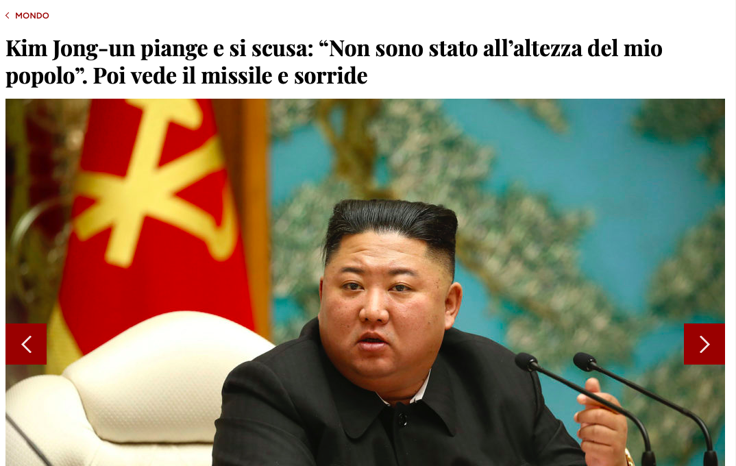 Non capisco come Kim sia diventato tanto buono. Secondo me è andato in crisi quando ha scoperto che Chiara Appendino ha deciso di non candidarsi e di fare un passo a lato. E in uno slancio di umanità, deve aver provato a imitarla con un momento Elsa Fornero.