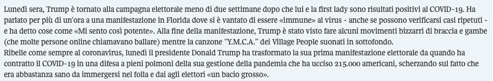 Non mi è chiaro se qualcuno creda che Salvini possa pensare a Hegel; in attesa di ricevere risposta da chi è abbonato a Repubblica e ha letto l’articolo per intero, distraiamoci con i vincitori del premio stampa locale non periodica della città di Foligno. (Se dobbiamo sequestrare lo striscione e l’autore è anonimo, chi viene imputato? Il direttore se è noto? L’editore? Lo stampatore? Gli sviluppatori di immuni? I dittatori sanitari? Lo stato d’emergenza?)